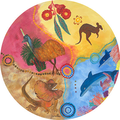 Mounted on a base of warm, honey-toned marri wood, the sculpture is anchored in the rich soils of Noongar Country. The base is subtly carved with flowing motifs of reeds and ripples, accented with delicate copper leaf to signify the life-sustaining gifts of nature. The wood’s natural grain, enhanced with organic oils, radiates warmth, inviting viewers to connect with the tactile essence of the land.